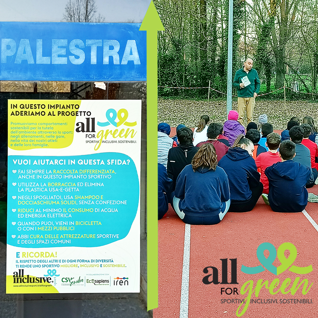 La novità per l’anno sportivo 2021/22 di All Inclusive Sport: All for green, un nuovo progetto che promuove la sostenibilità ambientale, a fianco dell’inclusione sociale, nelle realtà sportive della provincia di Reggio Emilia, con l’obiettivo di rendere “sportivi inclusivi e sostenibili” dirigenti, allenatori, atleti con o senza disabilità.
