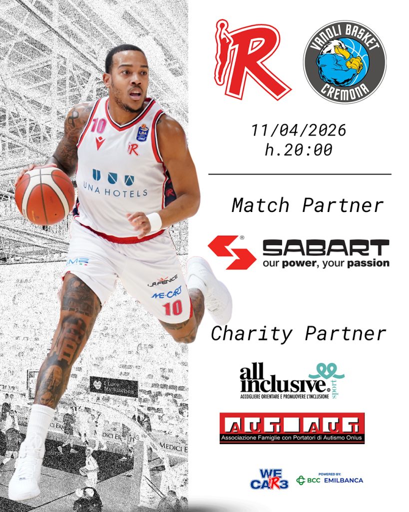 Sabato 11 aprile alle ore 20:00 al PalaBigi, la UNA Hotels Reggio Emilia affronta la Vanoli Cremona nella 26ª giornata di Serie A Unipol.