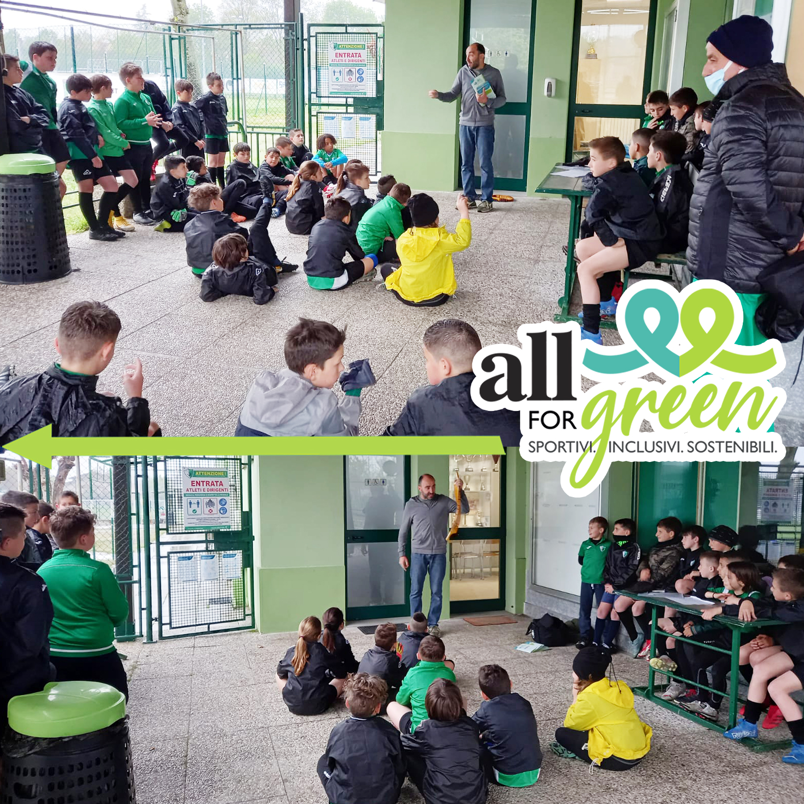 “All for green è un progetto scarno, ma proprio per questo è fruibile dalle società sportive: se avesse coinvolto maggiormente le squadre sarebbe risultato difficile da attuare. I ragazzi vengono al campo al pomeriggio per allenarsi, per giocare, divertirsi nel praticare il loro sport preferito. All for green, in un tempo limitato, rinforza i loro pensieri e le loro riflessioni sulla sostenibilità ambientale, e Marco, con il suo intervento, lo ha fatto in modo positivo e di impatto.