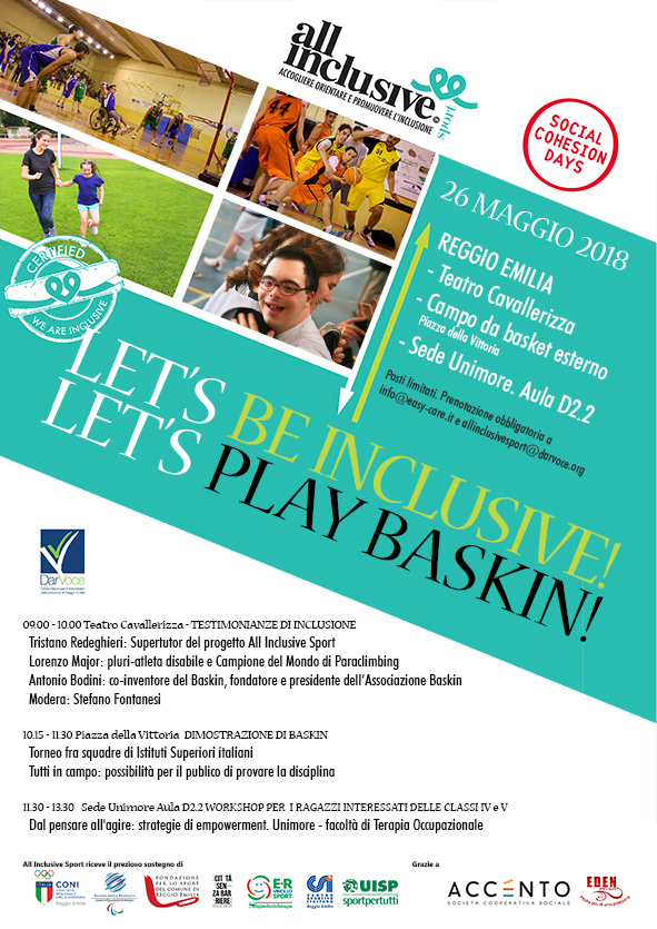 Sabato 26 maggio 2018, nella splendida cornice dei Social Cohesion Days [www.socialcohesiondays.com] si è svolto l’evento “Let’s be inclusive! Let’s play baskin!”.