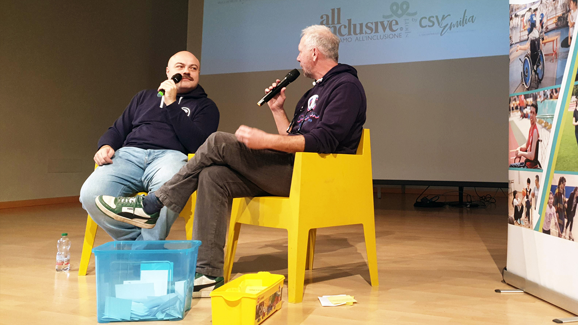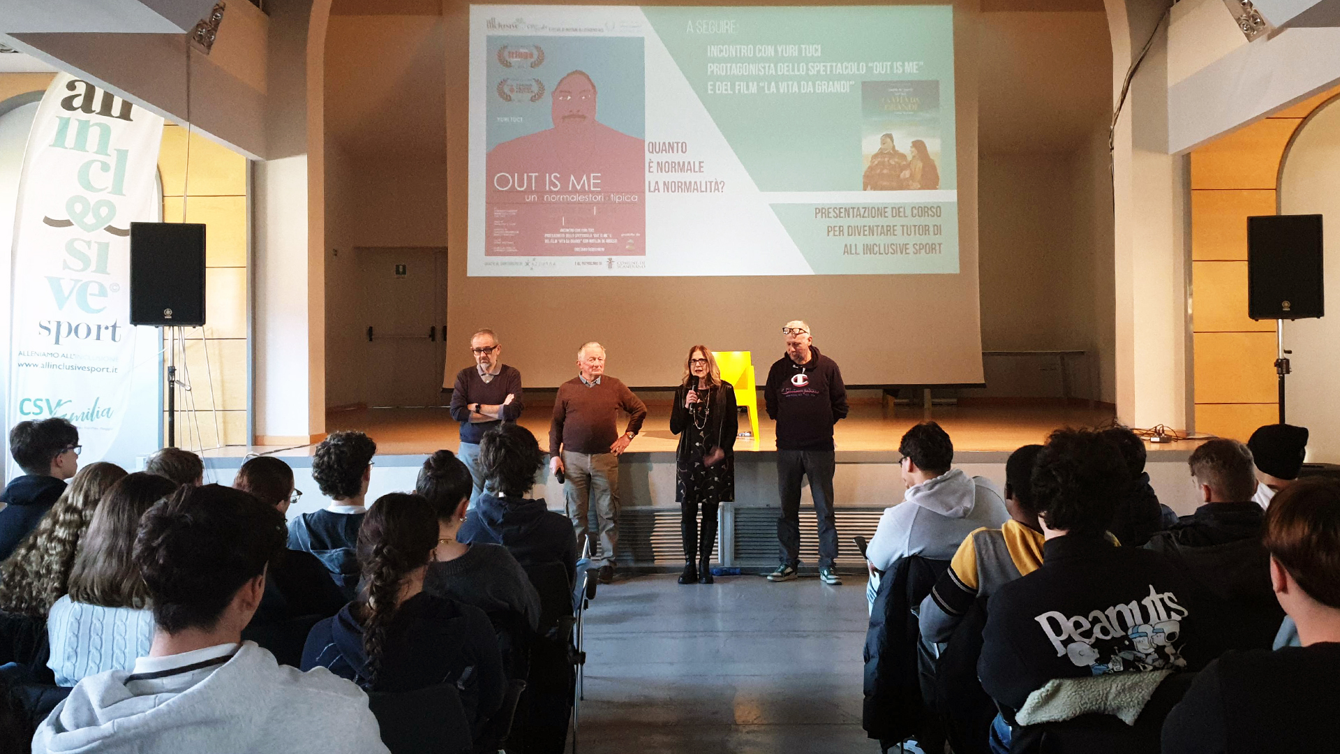 In occasione della Giornata internazionale per i diritti delle persone con disabilità 2025, All Inclusive Sport ha organizzato per gli studenti del IIS Gobetti di Scandiano (RE) una mattina con l’attore Yuri Tuci: l’attore ha portato in scena per loro il suo spettacolo teatrale “OUT IS ME” e, dopo la rappresentazione, ha risposto a un fiume di domande da parte dei ragazzi.